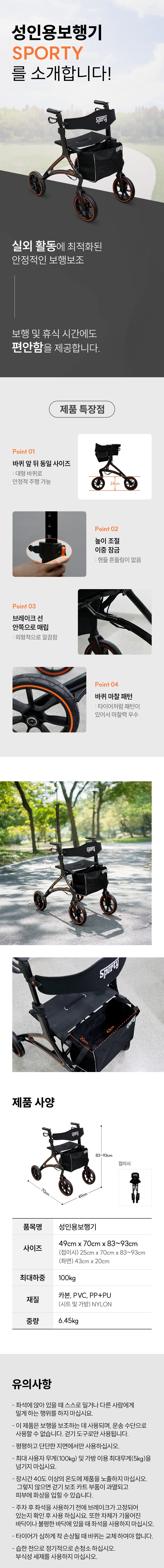 노인 어르신 성인용 보행기 롤레이터 SPORTY 비급여