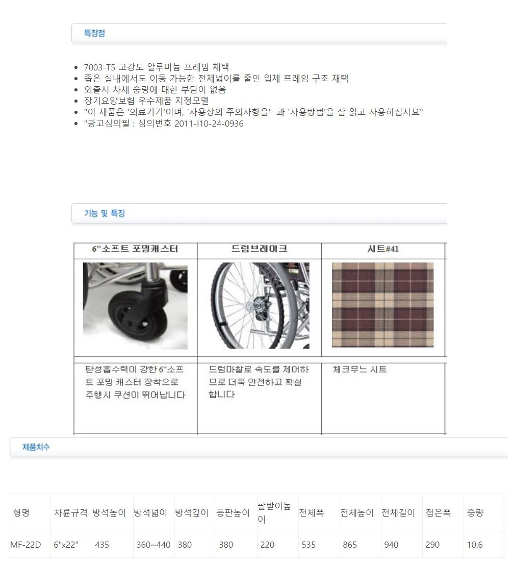 노인 어르신 수동 휠체어 MF-22D 비급여