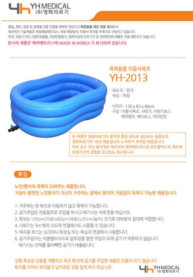 노인 어르신 이동 욕조 YH-2013 비급여
