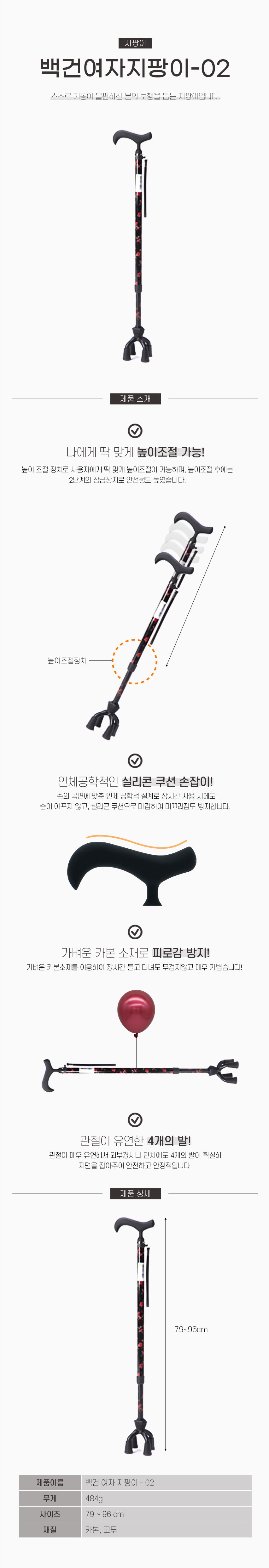 노인 어르신 카본 지팡이 백건 여자 지팡이-02 비급여