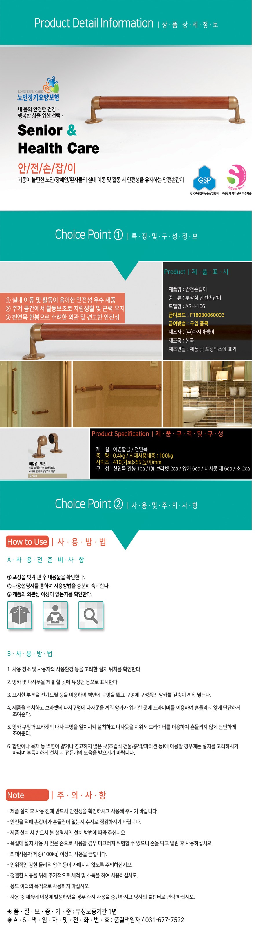 [4개 이상 무료설치] 노인 어르신 안전손잡이 벽부착형 ASH-106 비급여
