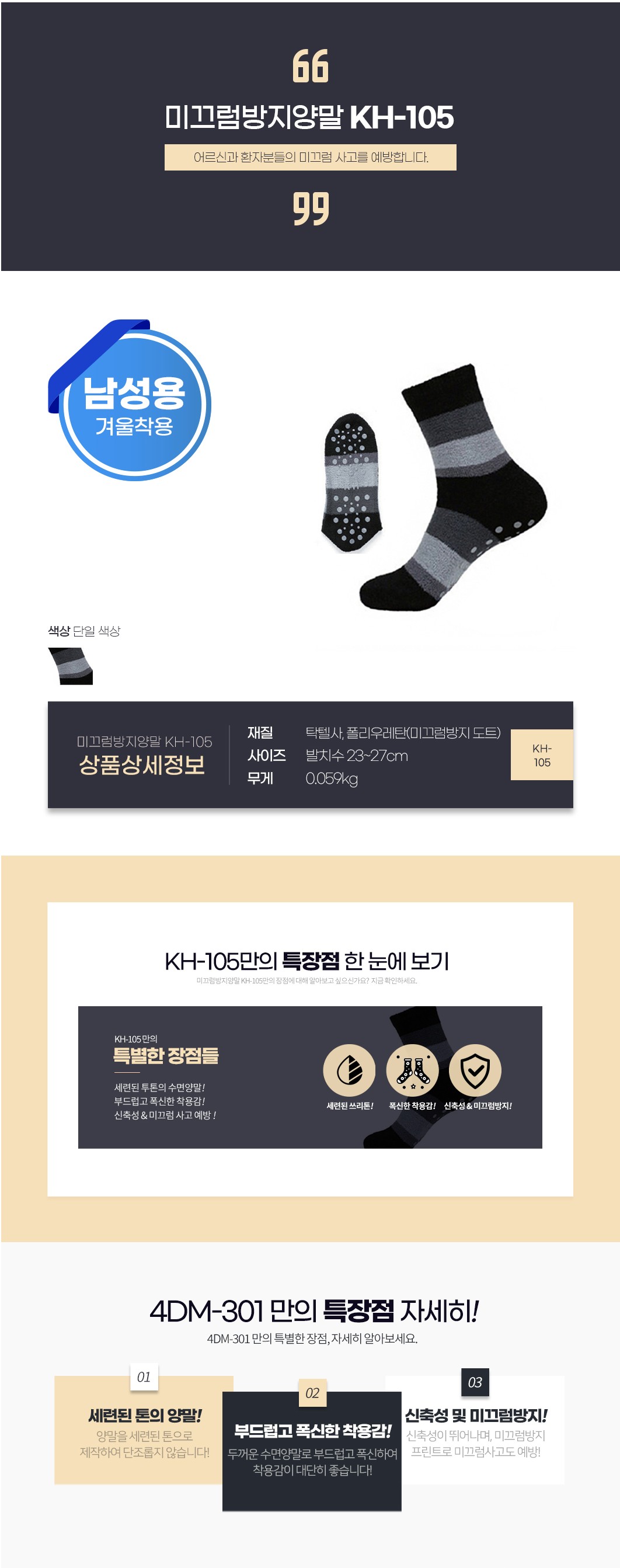 노인 어르신 미끄럼 방지 양말 KH-105 (남성용) 겨울용 비급여