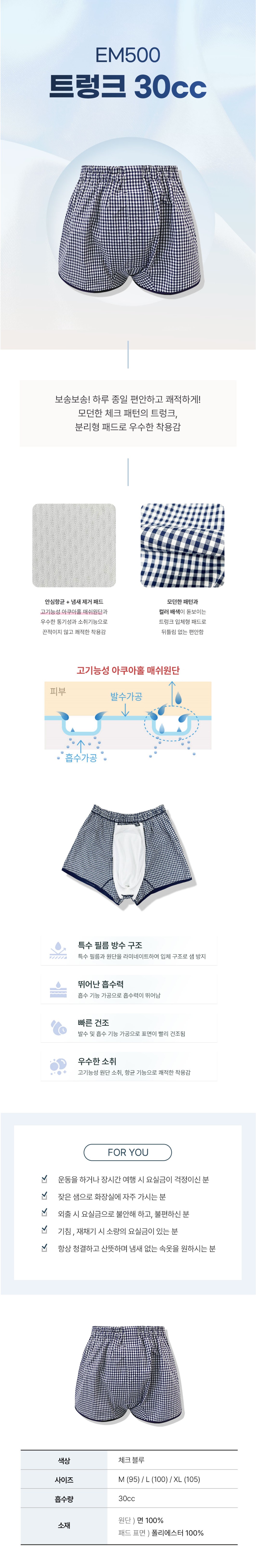 복지용구 실버용품 요실금팬티 남성용 EM500 트렁크 30cc 장기요양