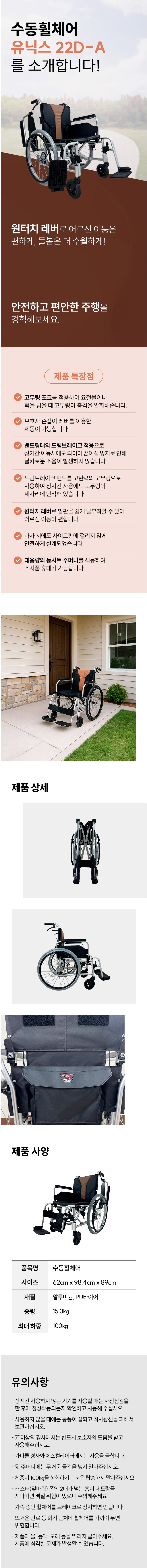복지용구 실버용품 수동 휠체어 유닉스 22D-A (대여) (전국 배송)