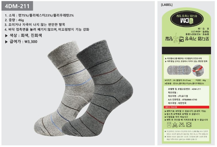 노인 어르신 미끄럼 방지 양말 4DM-211 (남성용) 비급여